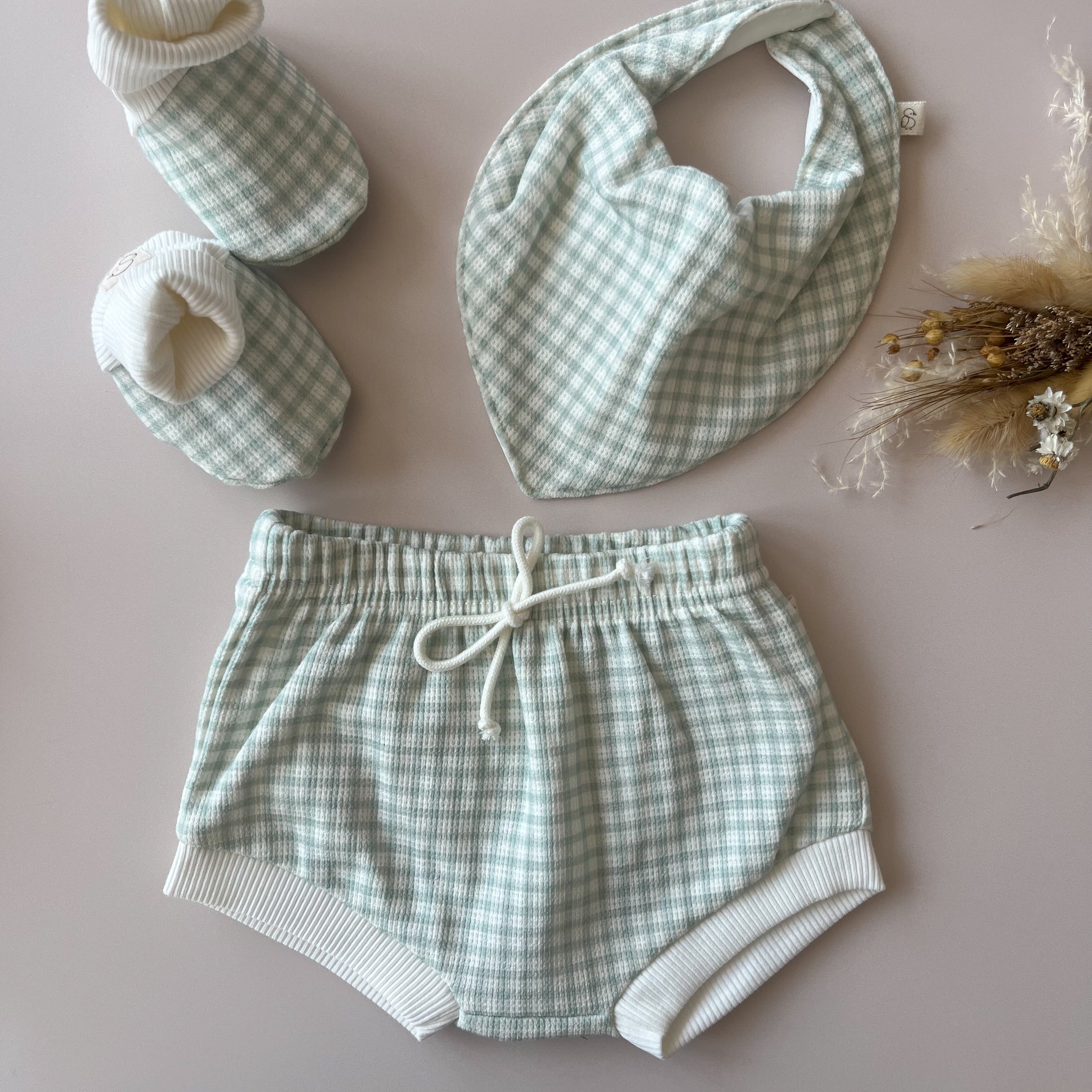 J’utilise des tissus certifiés Oeko-Tex, doux pour la peau des bébés et respectueux de l’environnement. Je sélectionne des textiles imprimés sur mesure en Europe, afin de garantir qualité et traçabilité.